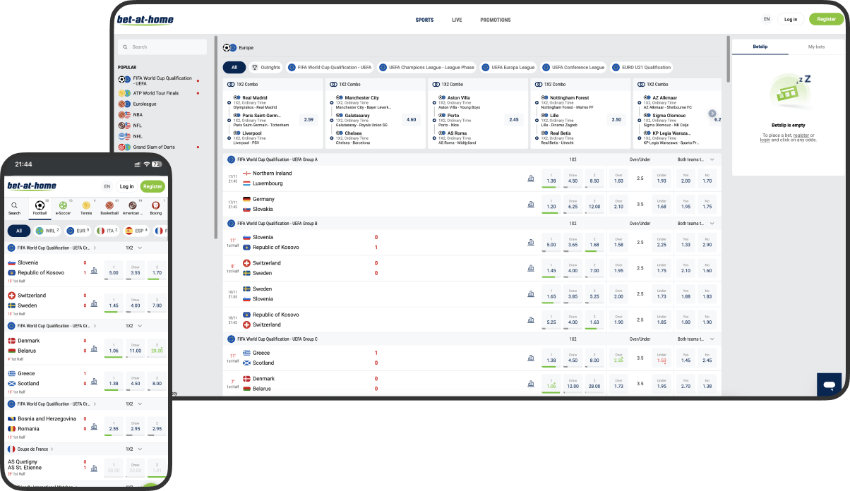 Bet-at-home is an internationally operating provider of online sports betting and gaming.