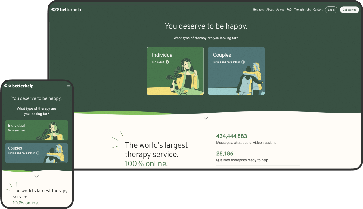 BetterHelp is the world’s largest online therapy service, offering a wide range of mental health support through video sessions, voice calls, live chats, and messaging. The platform was founded to break down traditional barriers to mental health care, making therapy more accessible, affordable, and convenient.
